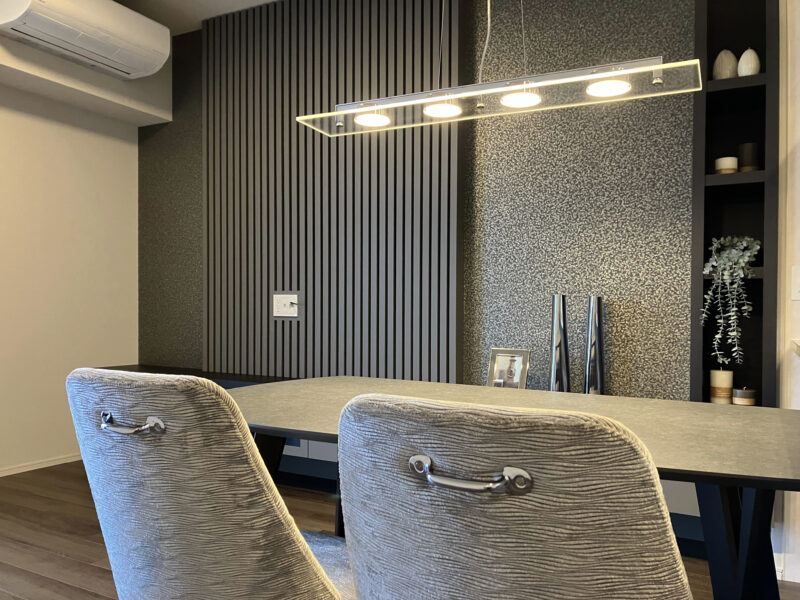 アクセントはルーバーをメインに その 両サイドに輸入クロスを使用しています。