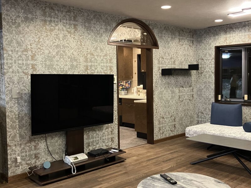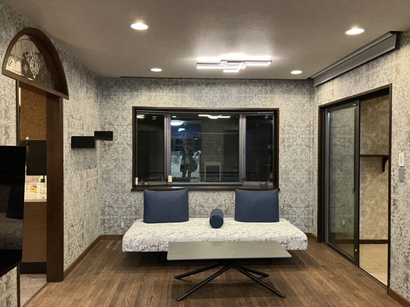 お手持ちのクールな家具や照明と雰囲気を調和させる壁紙の選定にこだわりました。
