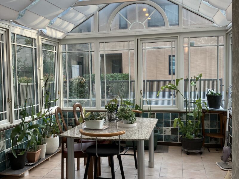 リビングの延長空間としてあるサンルームではいつでも植物のお世話やティータイムを楽しんで頂けます。